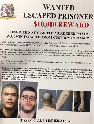 HOWARD COUNTY — (WMAL) The Howard County Police Department is now offering an award of $10,000 to anyone with information on the prisoner who escaped during a hospital transport Friday.