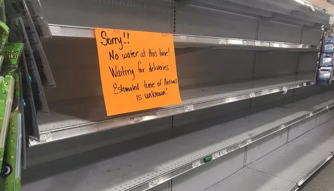 “Sorry!! No water at this time!” the sign read. “Waiting for deliveries. Estimated time of arrival is unknown!”