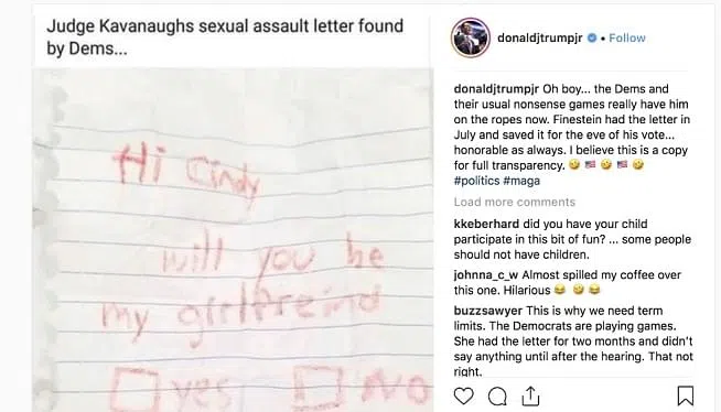 Trump Jr. Mocks Sexual Assault Claim Against Kavanaugh | News Talk 105.9 WMAL-FM