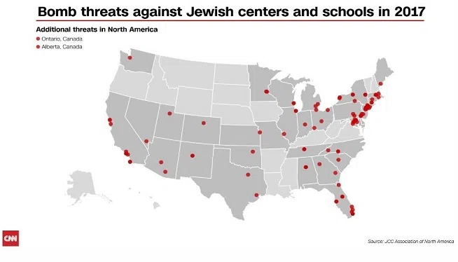 ROCKVILLE, MD — (CNN/WMAL) Anonymous bomb threats to Jewish institutions have spiked to about 140 incidents across the country since January, according to the Anti-Defamation League. The latest ...