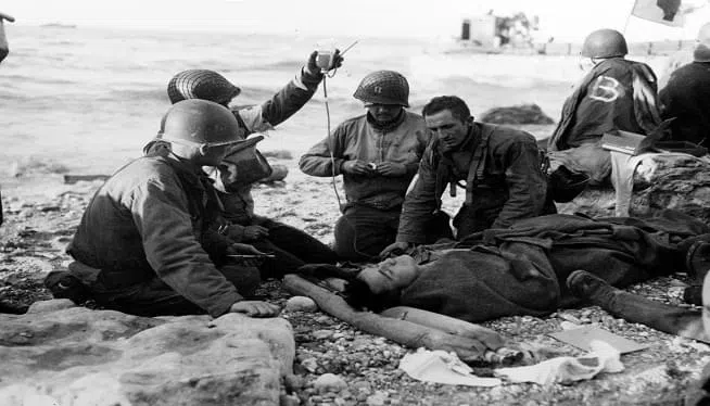 ON OMAHA BEACH, France (AP) - All at once, Charles Shay tried to stanch the bleeding from a ripped-open stomach, dull the pain with morphine and soothe the mind of a dying fellow American army medic. ...