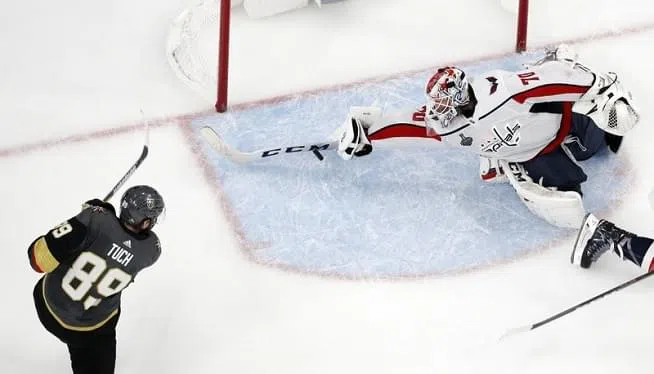 LAS VEGAS (AP) - Alex Tuch collected the skittering puck with absolutely nothing between him and the tying goal with two minutes left in Game 2 of the Stanley Cup Final.Braden Holtby reacted with pure...