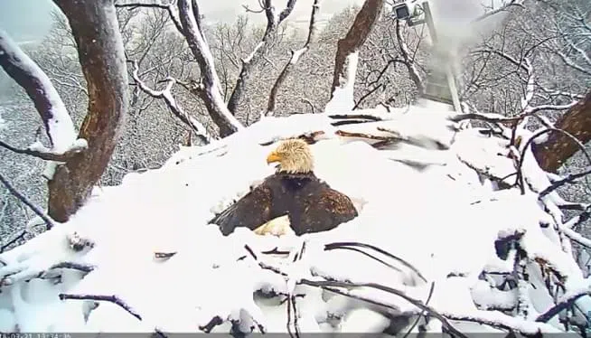 WATCH: Liberty Attempts to Keep Her Eaglets Safe From Winter Storm